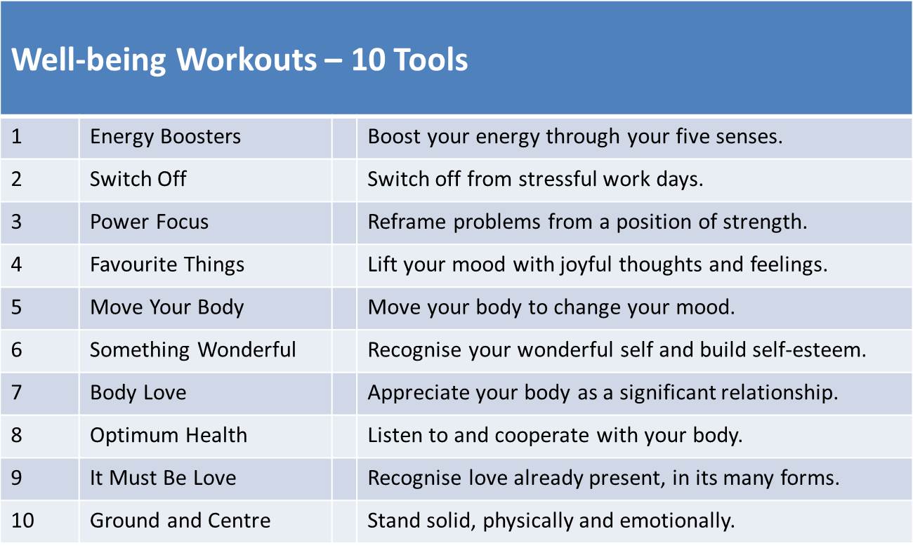 Well-being workouts are preventative exercises, that is, not just things to do when we feel sick, but things to do to stay healthy as long as possible. They are our mental equivalent of an apple a day.